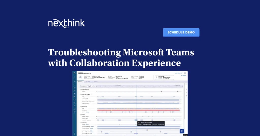 On Demand Webinar Watch Now Microsoft Teams is a vital workplace application for communication and collaboration. When employees have issues with their Teams call quality, productivity can grind to a halt. Watch this product demo now to see how you can see, diagnose, and fix Teams call quality issues with Nexthink Collaboration Experience. On Demand […]